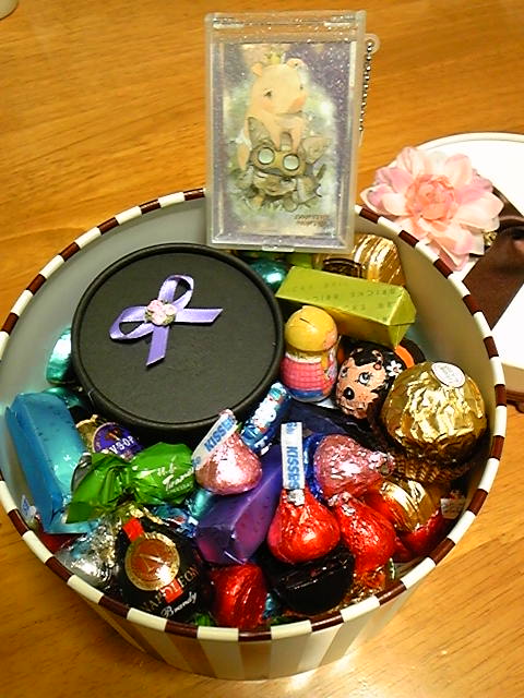 チョコにまぎれて、黒い小箱と、モンハンのミラーが隠れていました。