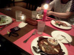 写真は主菜。電気屋さんはバルサミコ酢風味のカツレツ、サクラちゃんはおろしハンバーグ、私がビーフストロガノフ。