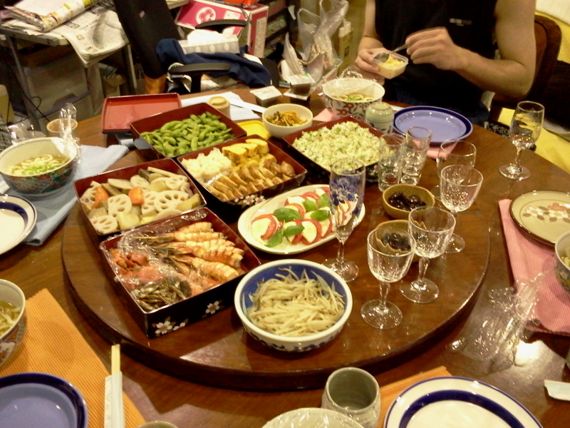 今日はお正月ということで、みんな揃ってごはん食べました。たいしたものではないですが、母と姉が、料理をお重に詰めてくれて、みんなでつっつきました。(添付写真←後ろ汚いね…ごめんなさ…)