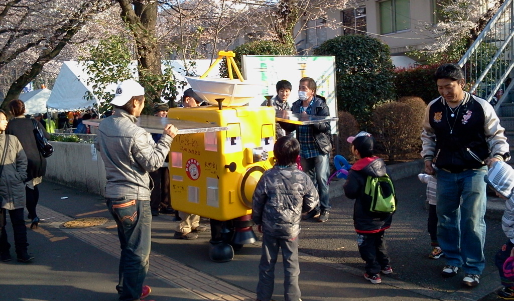 市役所前の大通りが全部桜並木なんですが、毎年桜並木の下を歩行者天国にした「桜まつり」をやるのです。今年の桜は、ほとんどが五~七部咲き程度ですが、一部で超見頃のものもあったりして、とっても綺麗でした。