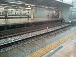 そのときの写真つけときますね。携帯のカメラだと、降ってる様子は見えないのですが、線路のあたりにたまった氷のつぶつぶが見えると思います。