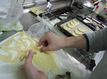 鳥さんクッキーを型抜く弟。