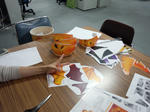 写真は、昨日先輩とつくったショールーム模様替え用のかざり!中にLED仕込んだよ(´¬`)