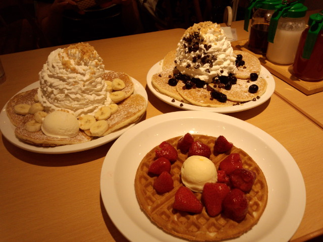 夜から視察。視察前の休憩に、先輩と「Eggs'n things」(エッグスン シングス)へ!
