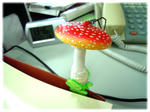 先日レモンちゃんと一緒に買ったキノコストラップを机に飾ってみました。